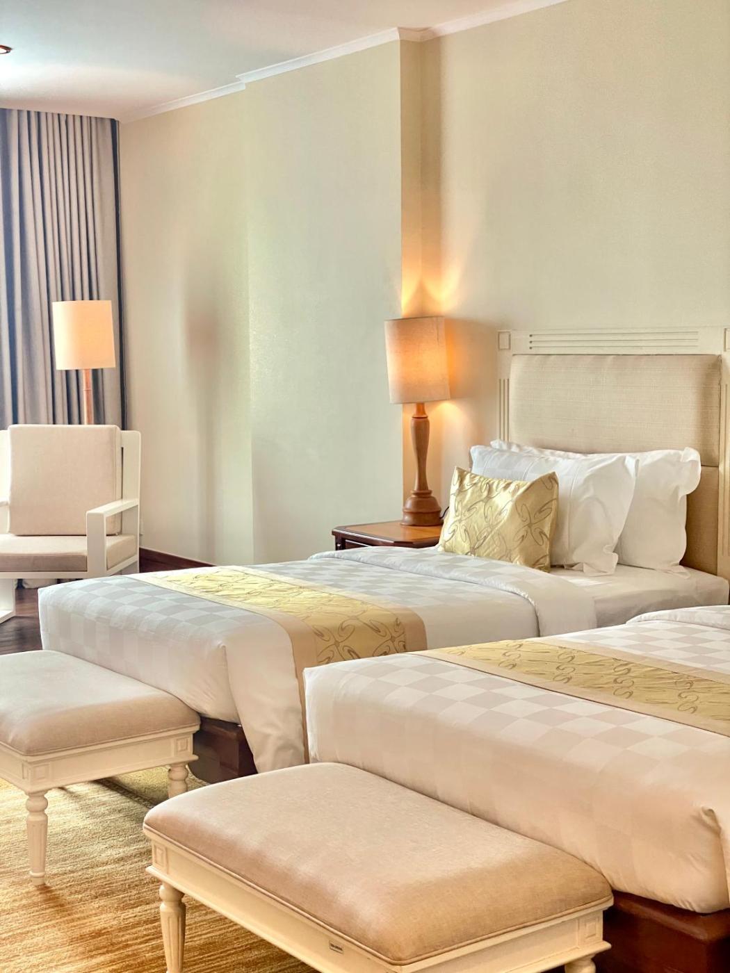 Mekong Suite. This two-bedroom apartment for 5 features living and dining areas, en suite bathroom and a fully-equipped kitchen. Complimentary bottled water and teacoffee facilities are replenished daily. Please note that this room type can accommodate a baby cot (subject to availability upon request). Benefits include: - Cold towel upon arrival - Turn down service every evening - Buy 1 get 1 free drink at Wave Club during Happy Hour (from 18:00 to 20:00) - 10% discount on spa treatments at Jasmine Spa - 10% discount on food and beverages
