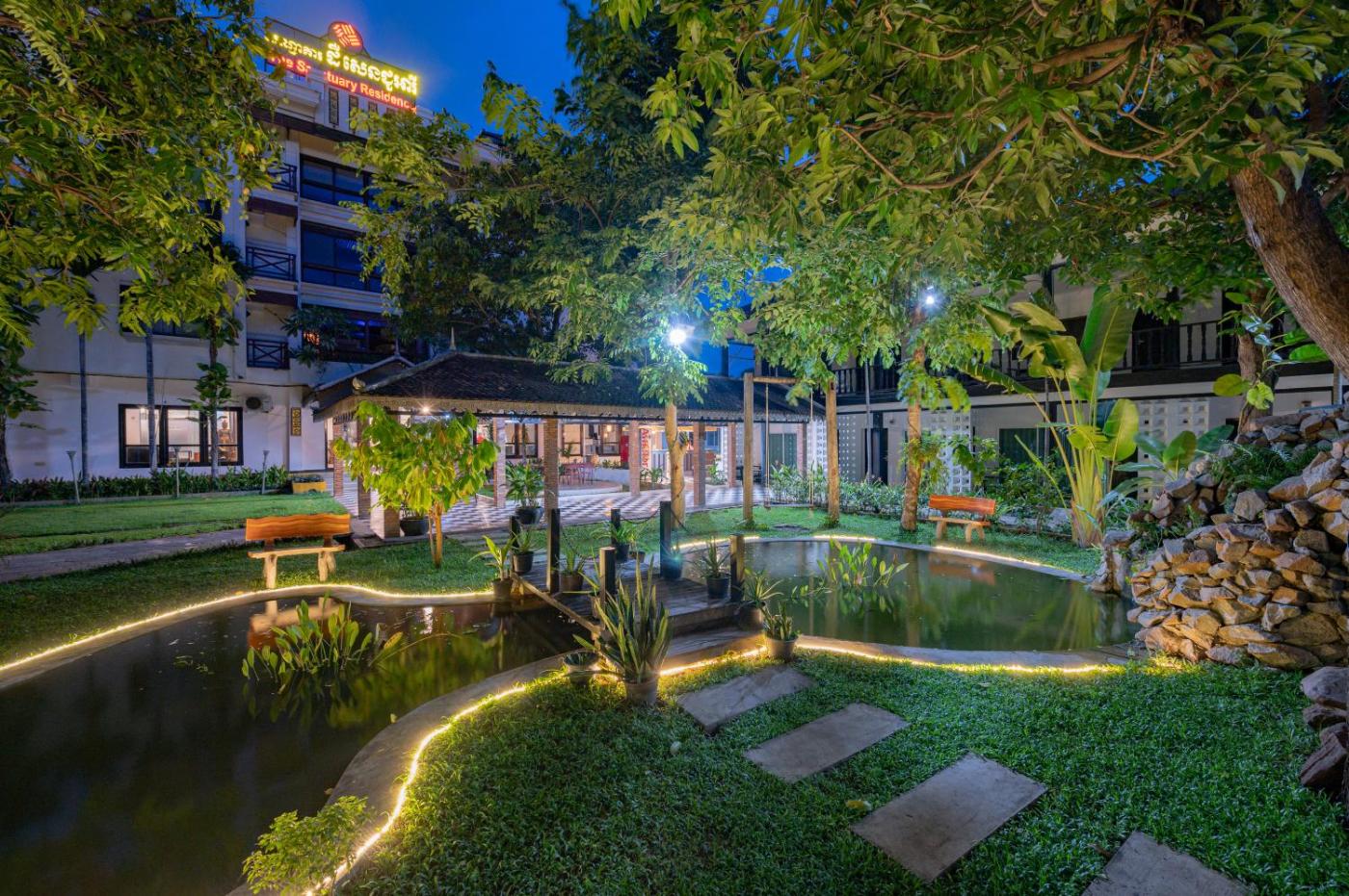 International, Thai and Khmer dishes are servedday at the hotel’s restaurant. Cocktails are available from the pool bar.
