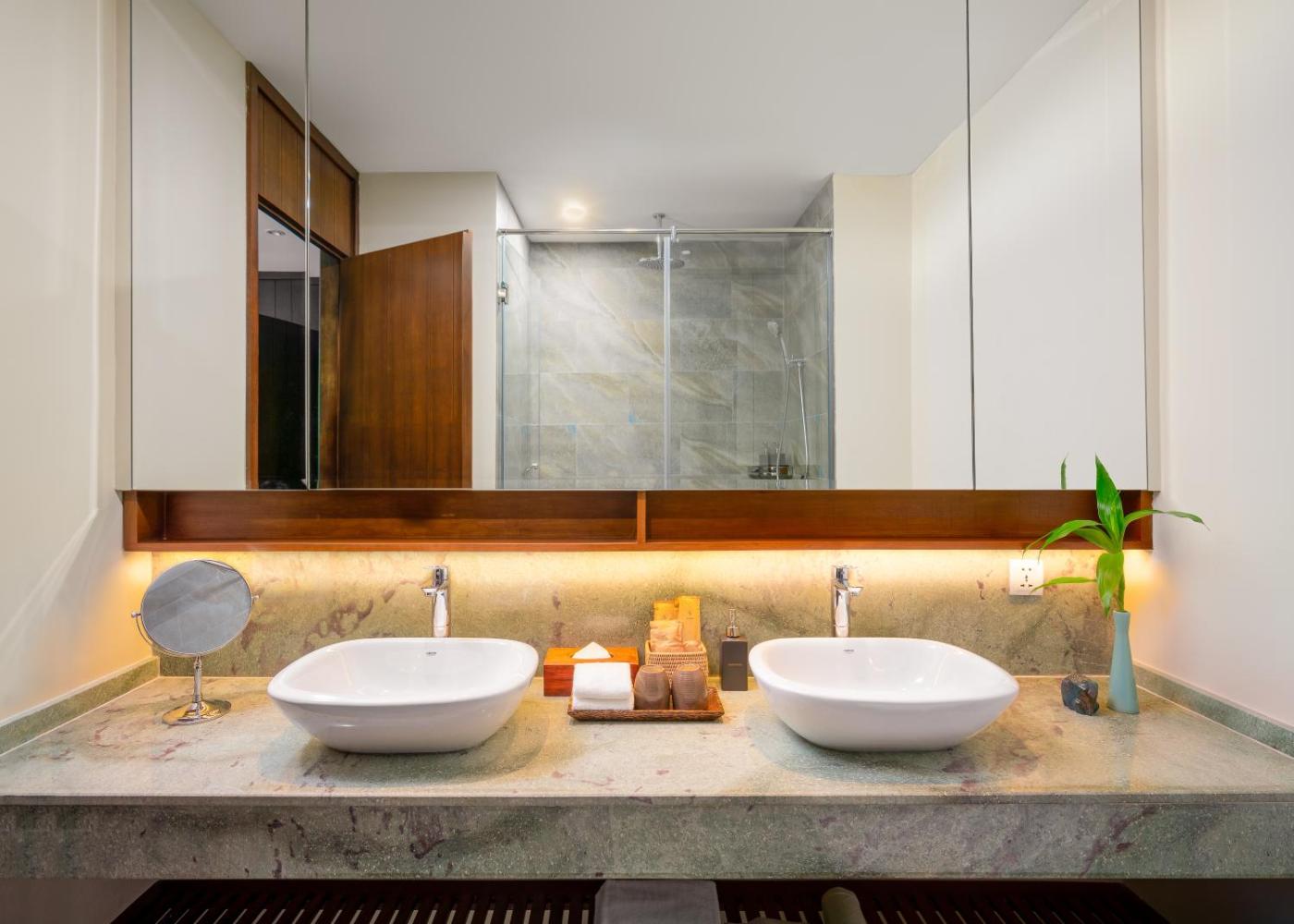 Two-Bedroom Suite. This spacious suite consists of 1 living room, 2 separate bedrooms and 2 bathrooms with a shower and free toiletries. The suites kitchen, which has a refrigerator, is available for cooking and storing food. This suite features air conditioning, a tea and coffee maker, a TV and a balcony. The unit offers 3 beds. ;